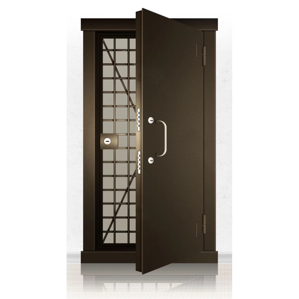 Металлические двери КХО и КХН представляют собой входные блоки, обладающие высоким уровнем взломостойкости и состоят из трех основных элементов: усиленного каркаса, сплошного металлического полотна и решетчатой двери. Дверной блок изготавливается из стального уголка 100*100 мм. Места крепления блока к стене цементируются и закрываются стальными наличниками шириной 40 мм. Крепеж заходит вглубь стены на 80 мм. В конструкции внешней створки монтируются ребра жесткости, для обшивки используется сталь толщиной не менее 3 мм. Внутренняя решетка изготавливается из прутка диаметром 16 мм. Размер ячеек решетки должен составлять не более 15 на 15 см. В точках пересечения прутья надежно приваривают друг к другу. В КХО и КХН необходимо поддерживать определенную температуру и влажность. Для этого внутреннее пространство глухой двери заполняется теплоизоляционным материалом, а по периметру двери приклеивается уплотнитель. Такие двери оборудуются замками с повышенным уровнем взломостойкости. Специализированные двери КХО и КХН в Куртамыше могут быть оснащены сигнализацией, в конструкции могут быть проушины для навесного замка и элементами для опечатывания. Если идет речь о двери в комнату хранения оружия, в створке оборудуется окно для выдачи оружия и спец. средств, которое накрывается стальной дверцей.